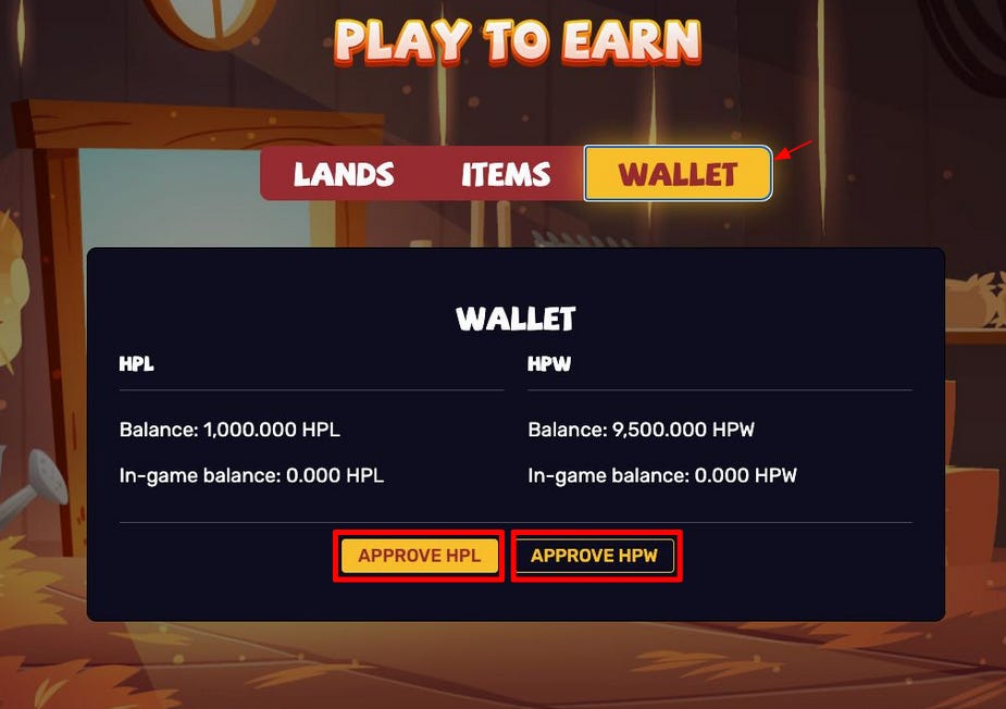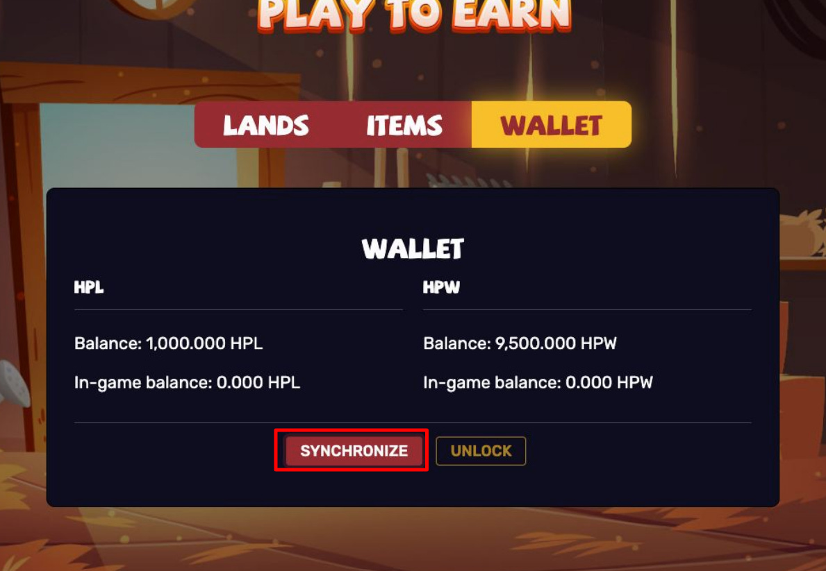 On the “Wallet” tab, click “Approve HPL” and “Approve HPW” to approve the tokens you have for synchronization